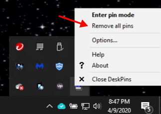 - Right-click the DeskPins icon found in your system tray (bottom-right).
