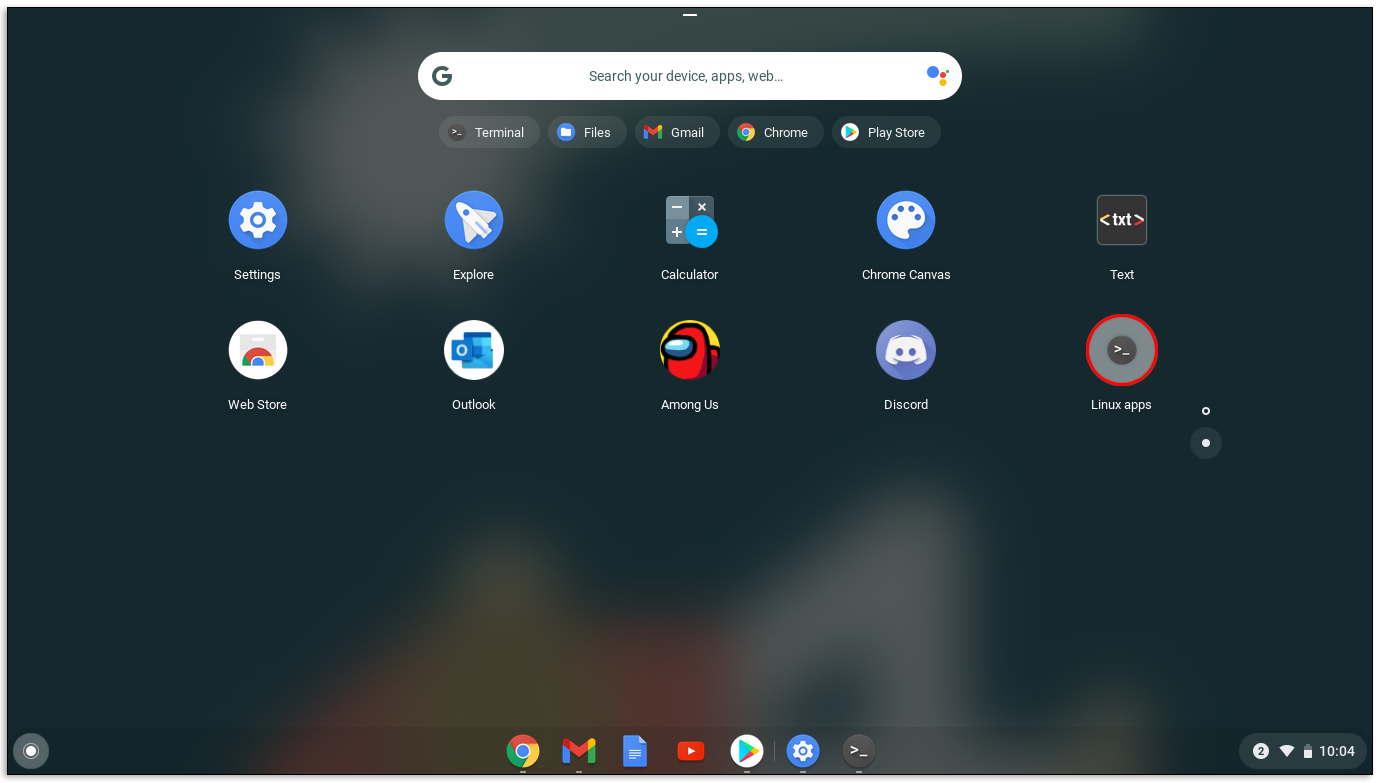 - Launch a Terminal from your Linux apps tab in the App Drawer.