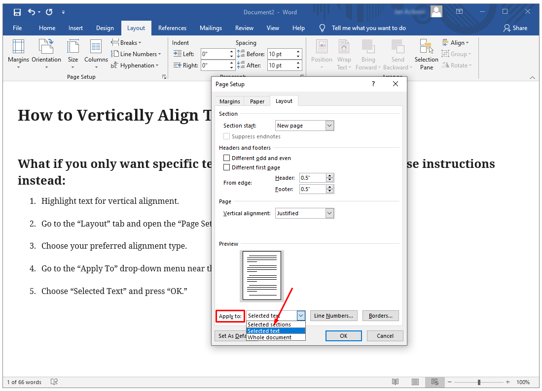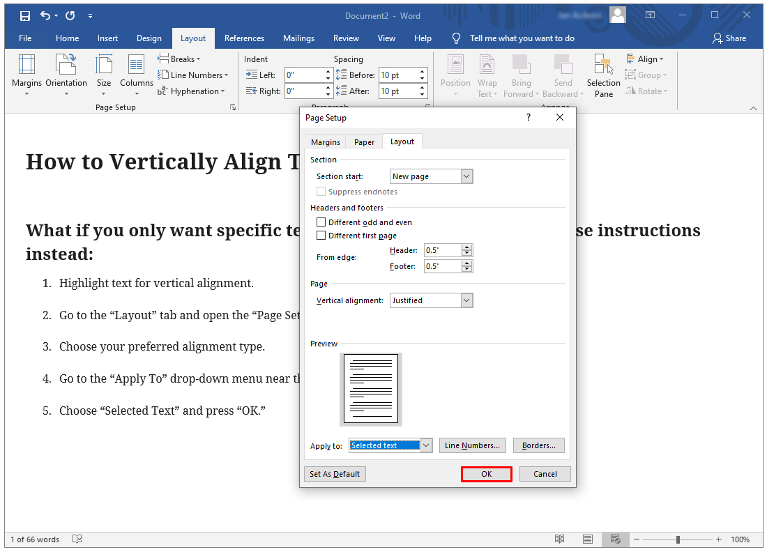 How to Vertically Align Text in Word