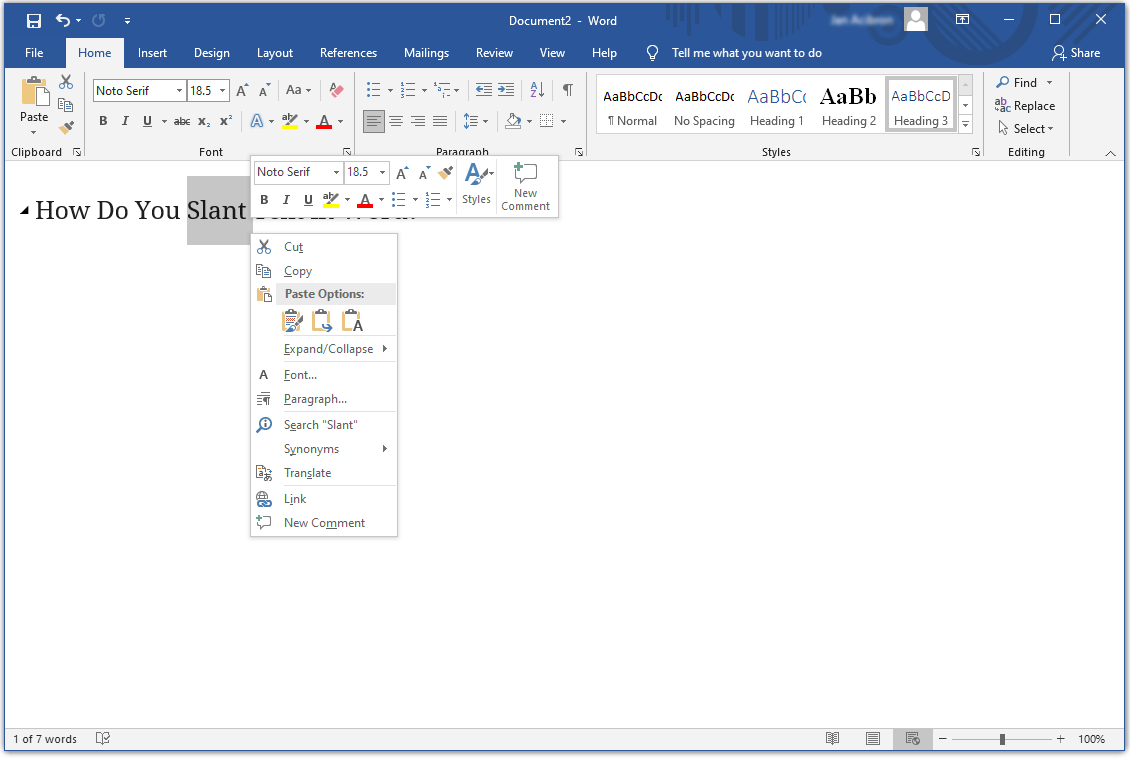 How Do You Slant Text in Word?