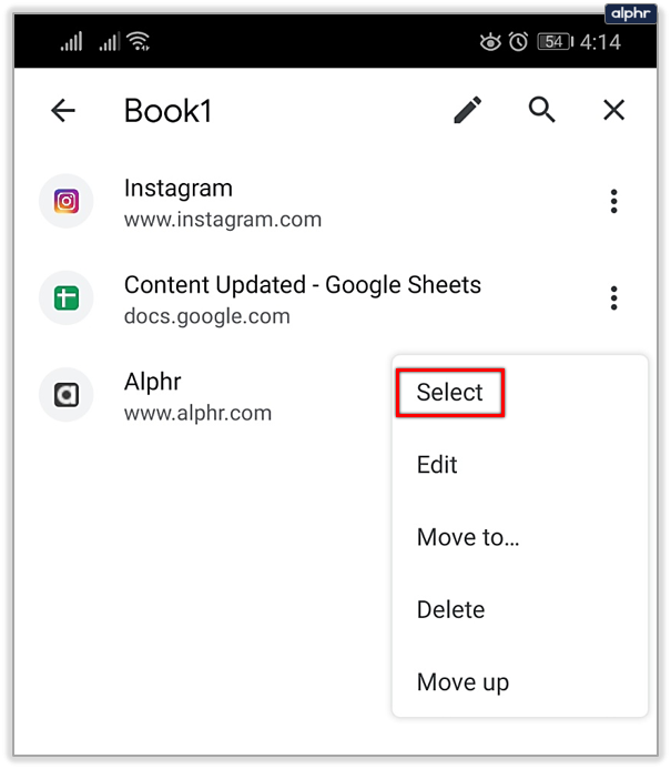 - If you want to open multiple tabs at once, tap on the three dots next to one of the entries on the list, then tap Select.