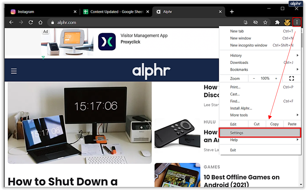 - Click on the Options (three dots icon), then select Settings.
