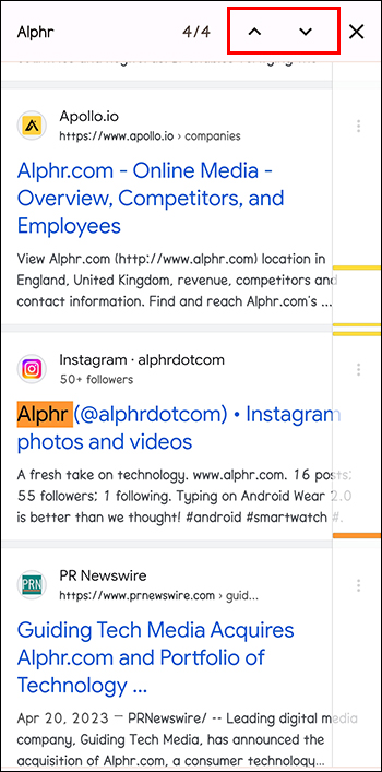 - There are two arrows pointing up and down next to the search bar that allow you to scroll through the feed. You can jump to each section containing the specified word.