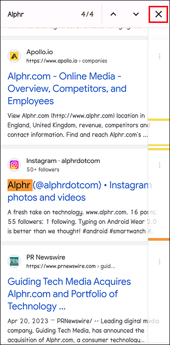 - After completing your search, tap on X to close the window.