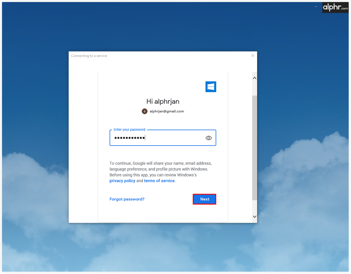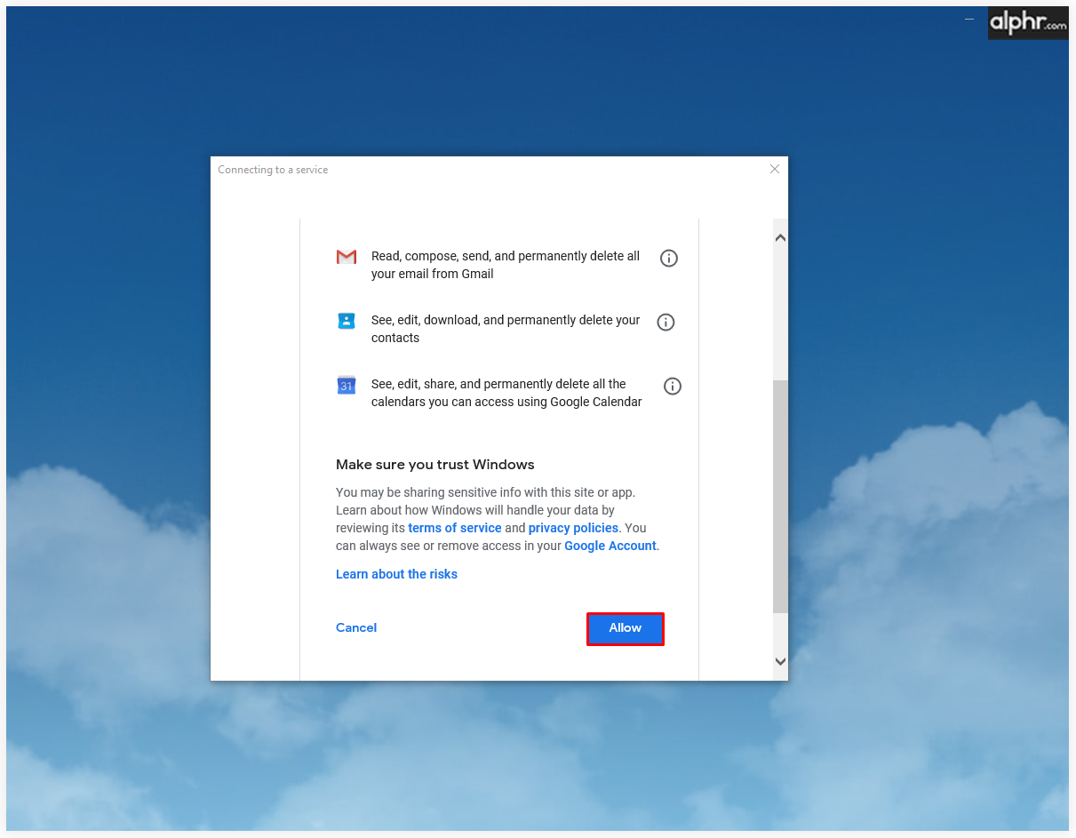 - Click Allow to enable Windows to access your Google account.