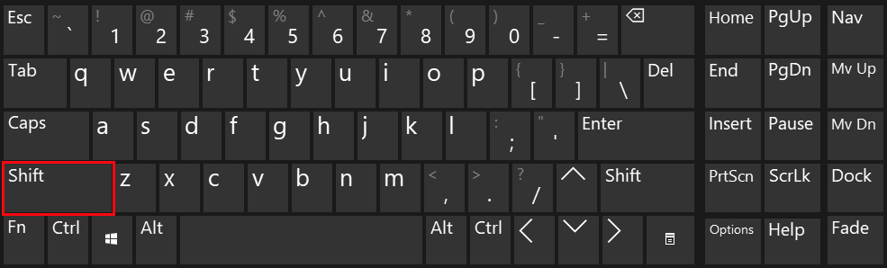 - Hold down the Shift key.