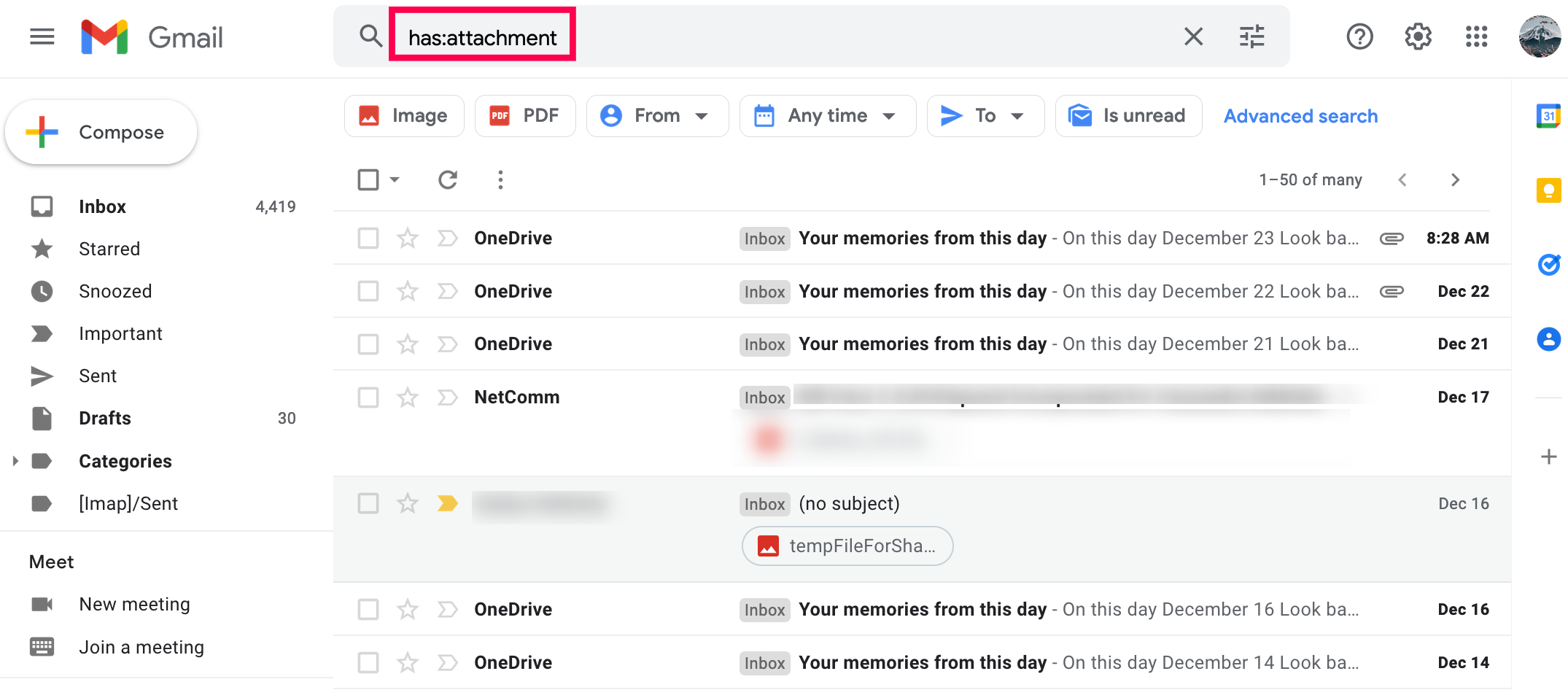 Can I select only the emails that have attachments?