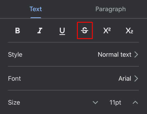 How to Strikethrough on Google Docs App