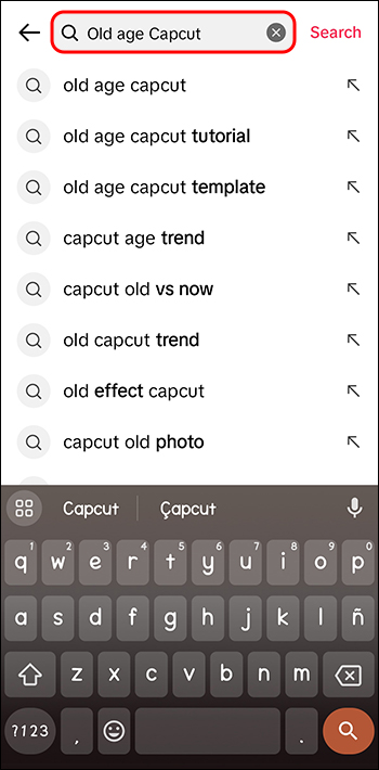 - On the search bar in TikTok, type in “Old age CapCut.”