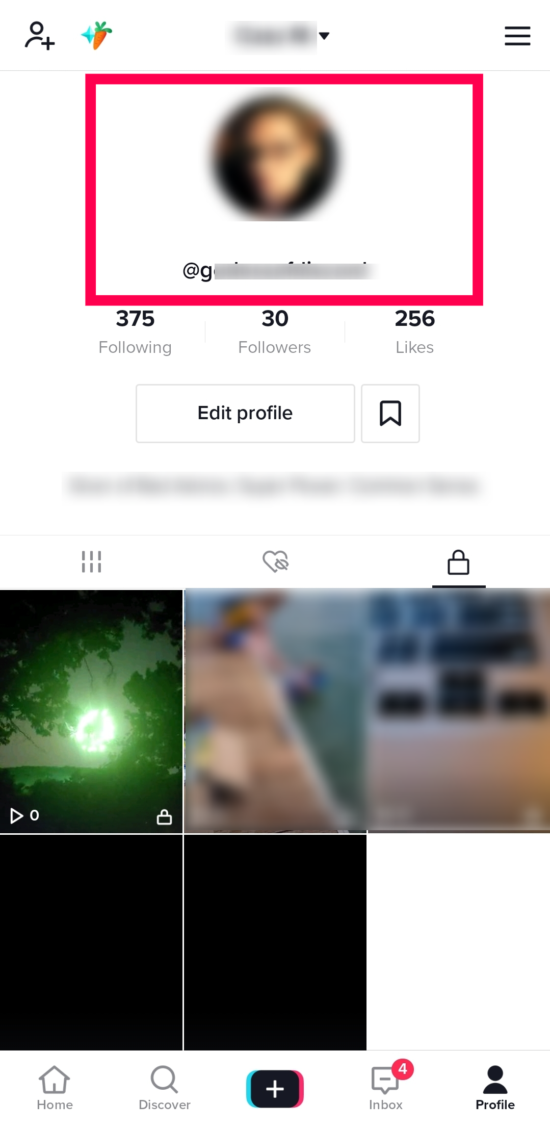 - At the top, you will see your profile picture and your username. Other users can find your profile by searching for the name with the ‘@’ symbol before it.