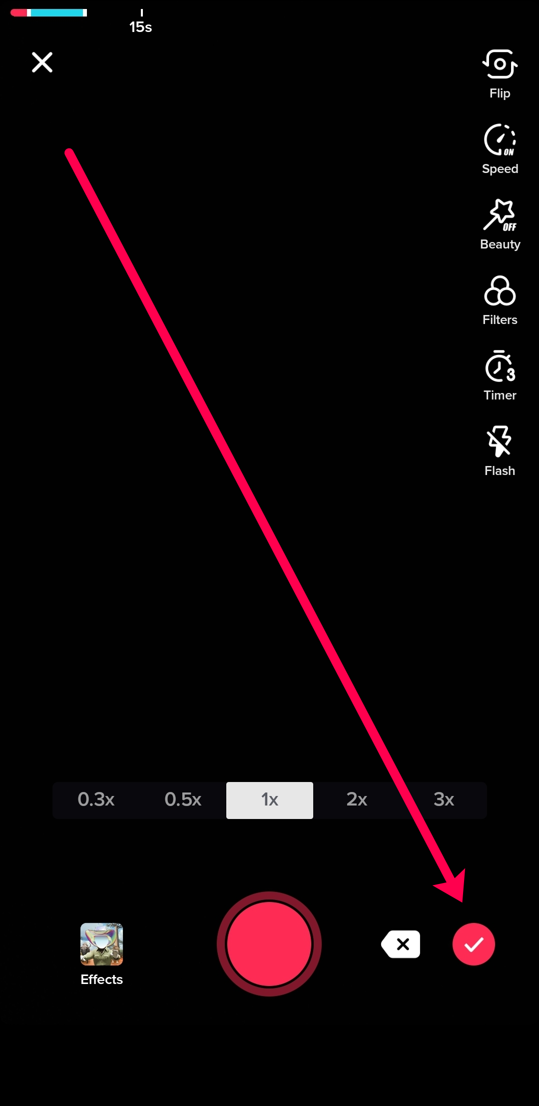 - When you’re finished recording, tap on the red checkmark in the lower right corner.