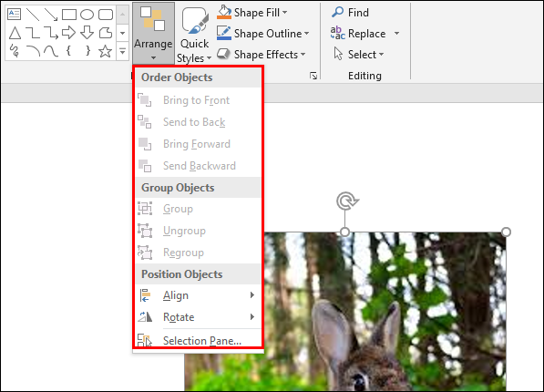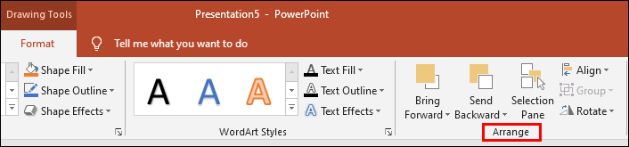 - Go to the “Format” section and find the “Arrange” option.