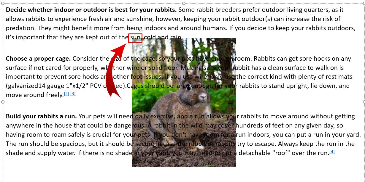 - The text will now be placed around the image the way you arranged it in the Microsoft Word file.