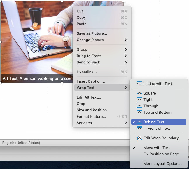 - Right-click on the picture and select “Text wrapping,” followed by “Tight.”