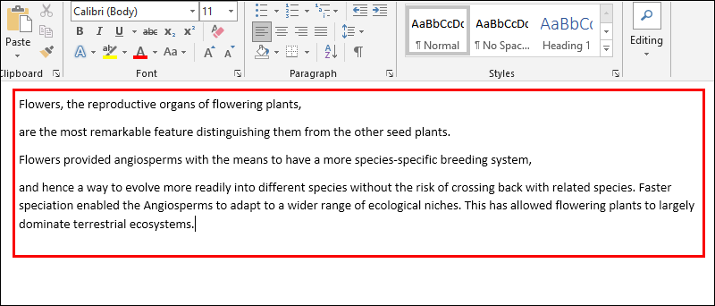 - Enter some text in Microsoft Word.