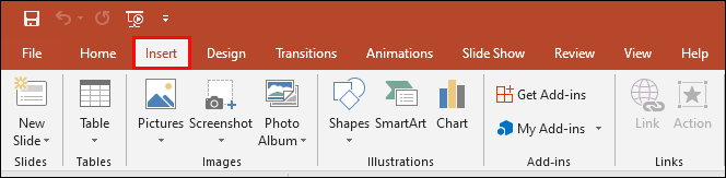 • Go to the “Insert” section on PowerPoint’s menu.