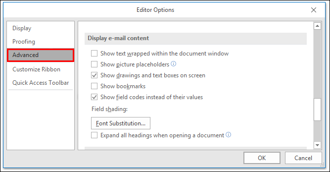 - In the “Display e-mail content,” untick the “Show Picture Placeholder” box.
