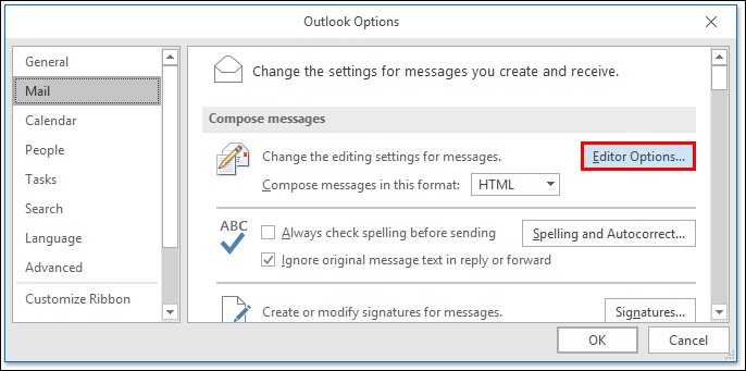 - Open Outlook and click on “New Mail.” Select “File” and then “Option.” Click on “Mail.”