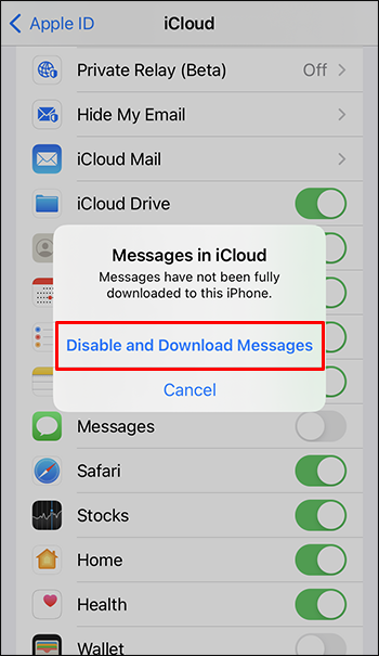 - Select “Disable and Download Messages.”