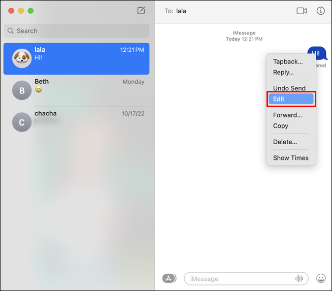 - Right-click the specific iMessage you’d like to get rid of.