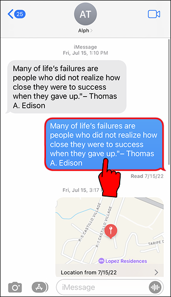 - Open the conversation that has the iMessage text you want to delete.