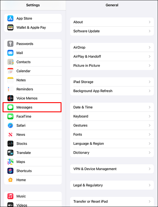 - Scroll down to “Messages.”