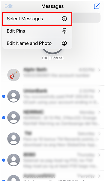 - From the options, select “Select Messages” to Select the chats you want to delete.