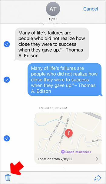 - You can now tap on any additional messages you want to remove. Each selected message will be check-marked.