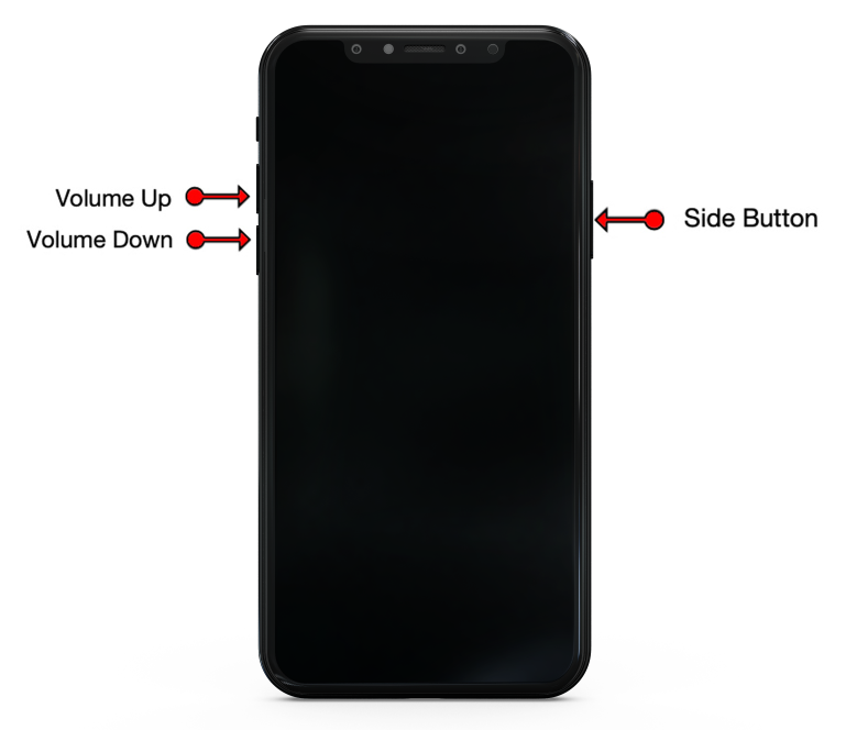 - Press and hold the Side button to turn it back on until you see the white Apple logo.