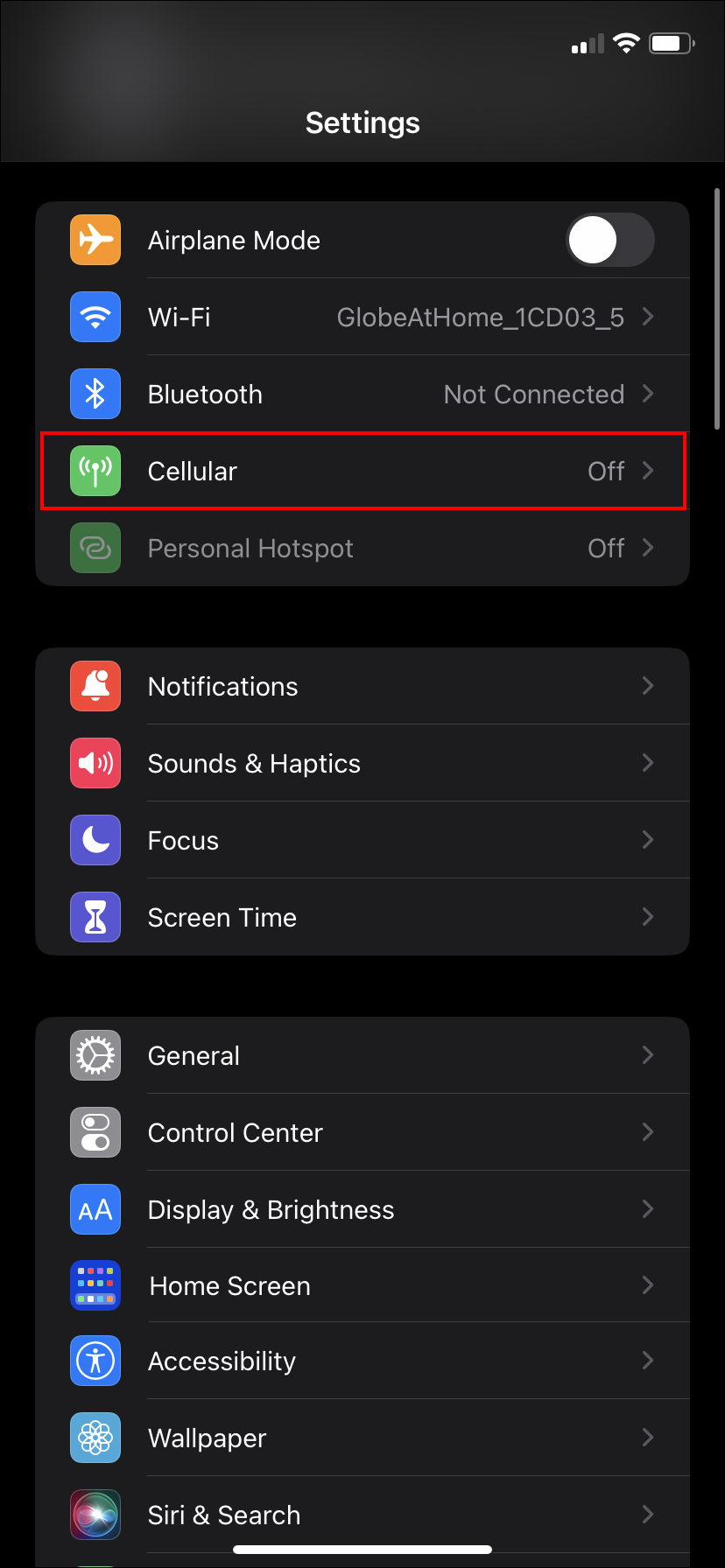 - Select “Cellular.”