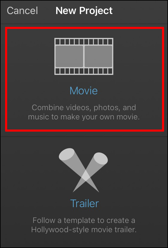 - Tap on the Movie button on the new window.