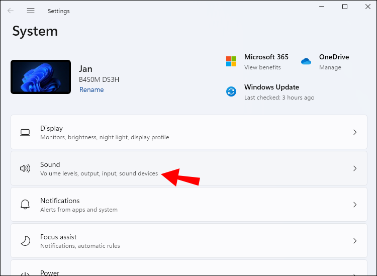 - Choose “System” from the left-side pane, followed by “Sound.”