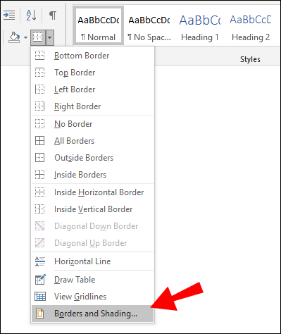 - From the “Paragraph” section, select the “Borders” pull-down menu and select “Horizontal Line.”