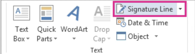 - Go to Text > Signature Line > Microsoft Office Signature Line.