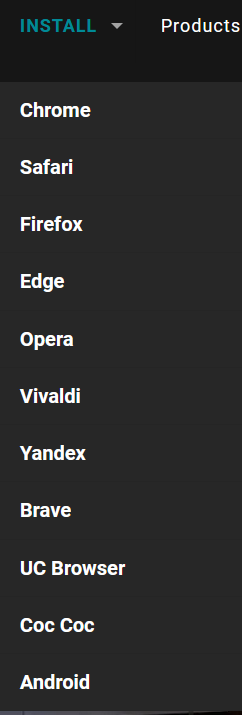 - Select the appropriate browser from the “Install” menu on the Night Eye site.