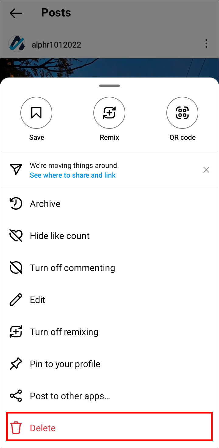 - Select “Comments” or “Likes,” depending on the type of interaction you had with the post.