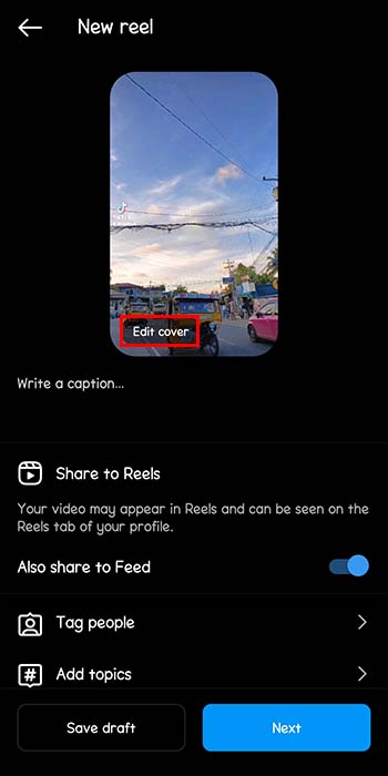 - Tap the “Edit cover” on the Reel preview.
