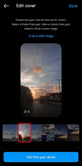 - Select the frame from your video as a cover image or choose one from your phone gallery.