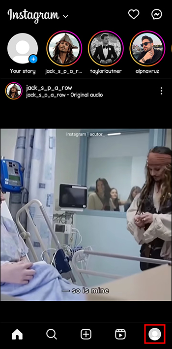 - In the bottom right corner of Instagram, click on your profile picture.