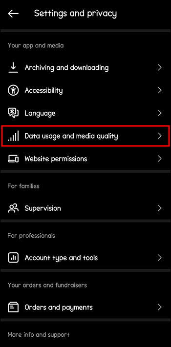 - Go to “Data usage and media quality.”
