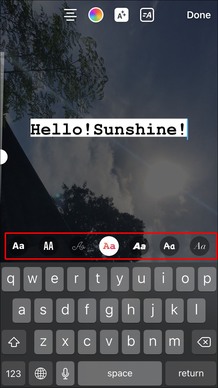 - When you are satisfied with your text, hit the “Done” button in the top right corner of the screen.