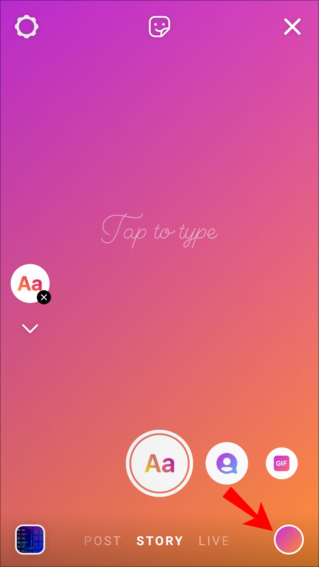 - Once you have your photo or video, look for the “Aa” icon at the top right and tap on it. Instagram’s text tool will open on the screen. Start typing your text.