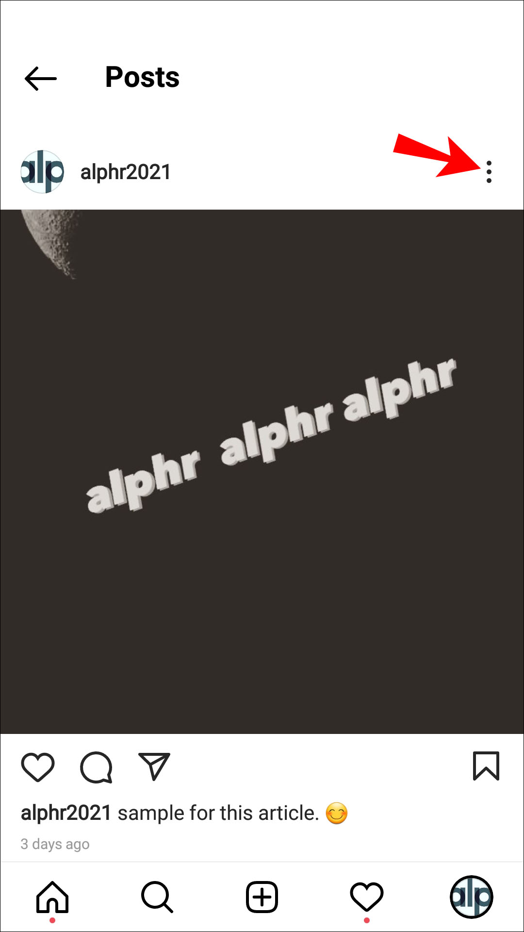 - Hit the three-dotted menu from the top right-hand of the post.