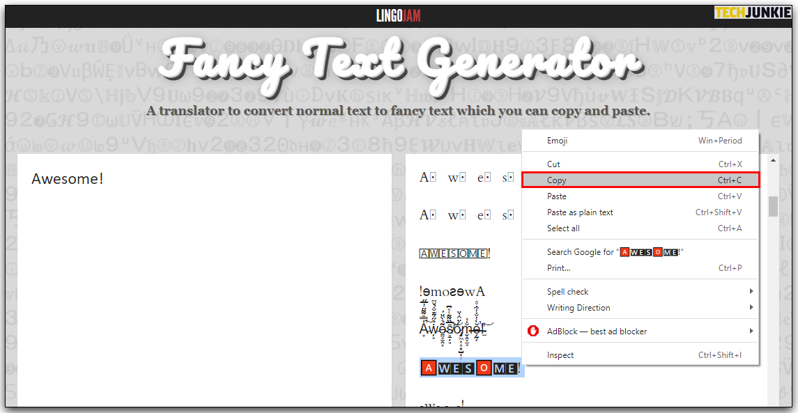 - Choose the font you’d like to use and then hit the copy button.