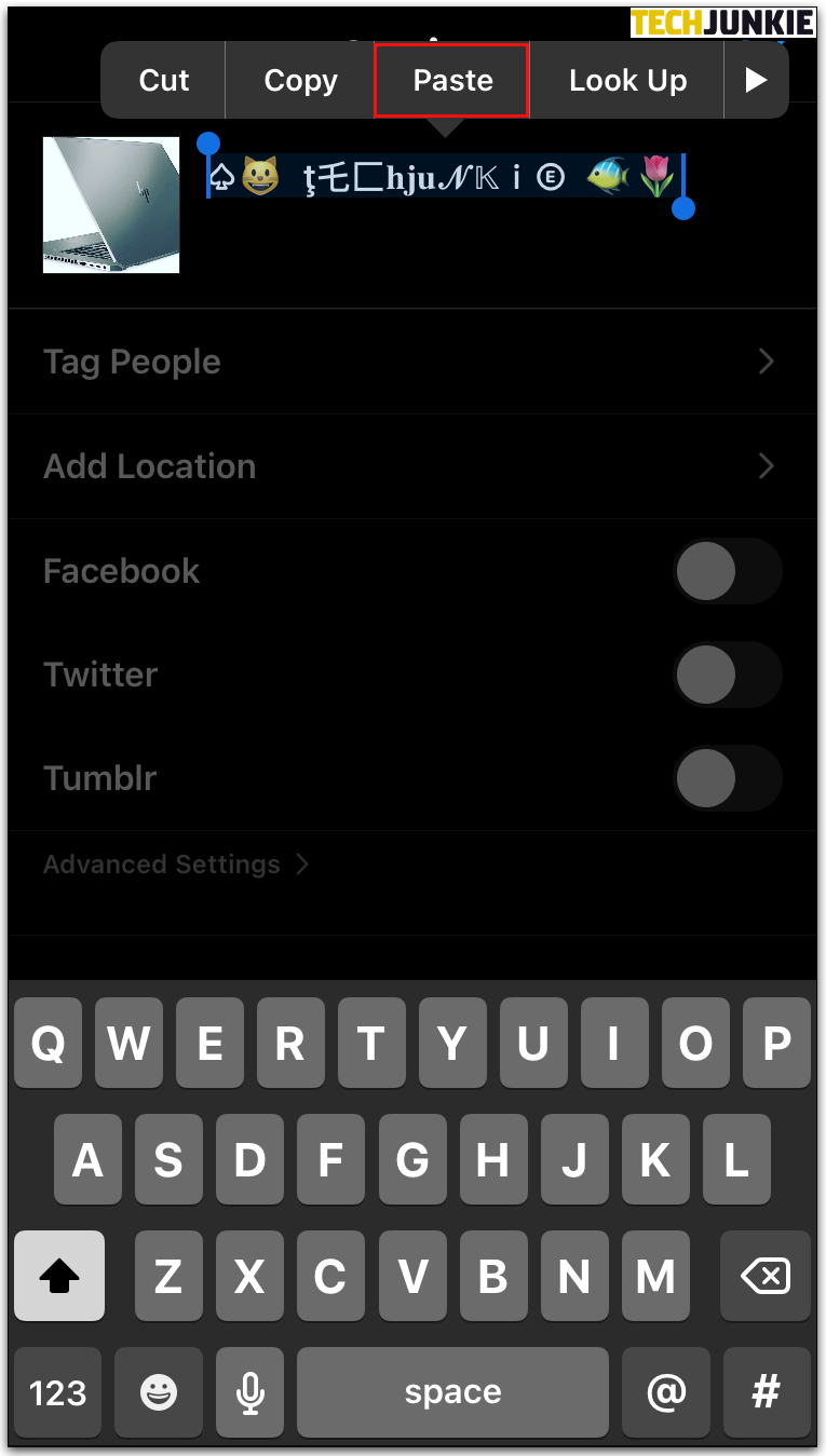 - Copy your text and paste it into your Instagram.