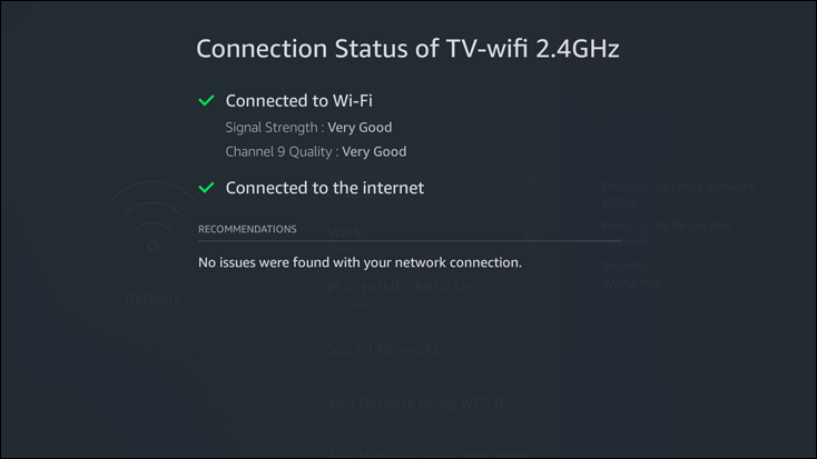 5. If the Fire Stick is connected to the internet, you will see a message that will state as such, and in that case, the internet connection isn’t a problem.