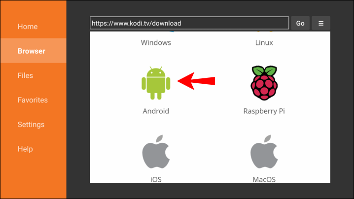 6. Once on the Kodi website, click on the Android app icon.