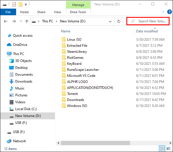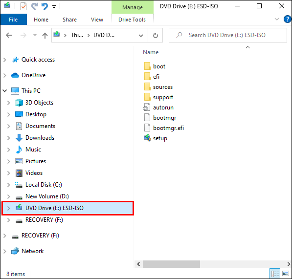 3. Locate the ISO file drive and click on the “Manage” tab at the top of the window.