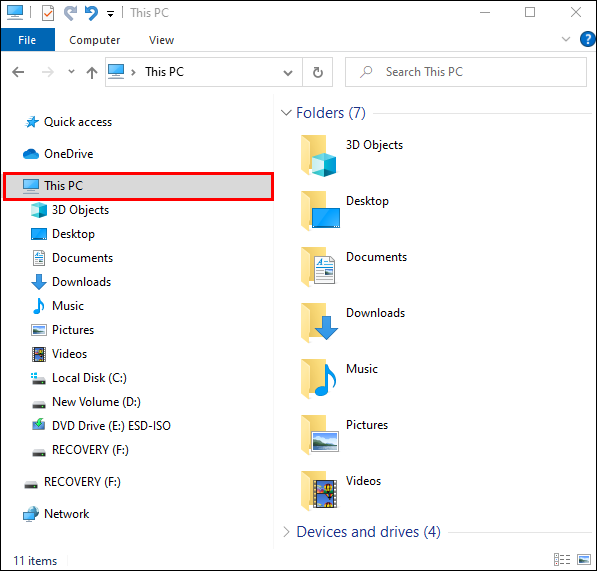 2. From the panel on the left-hand side, open the “This PC” tab.