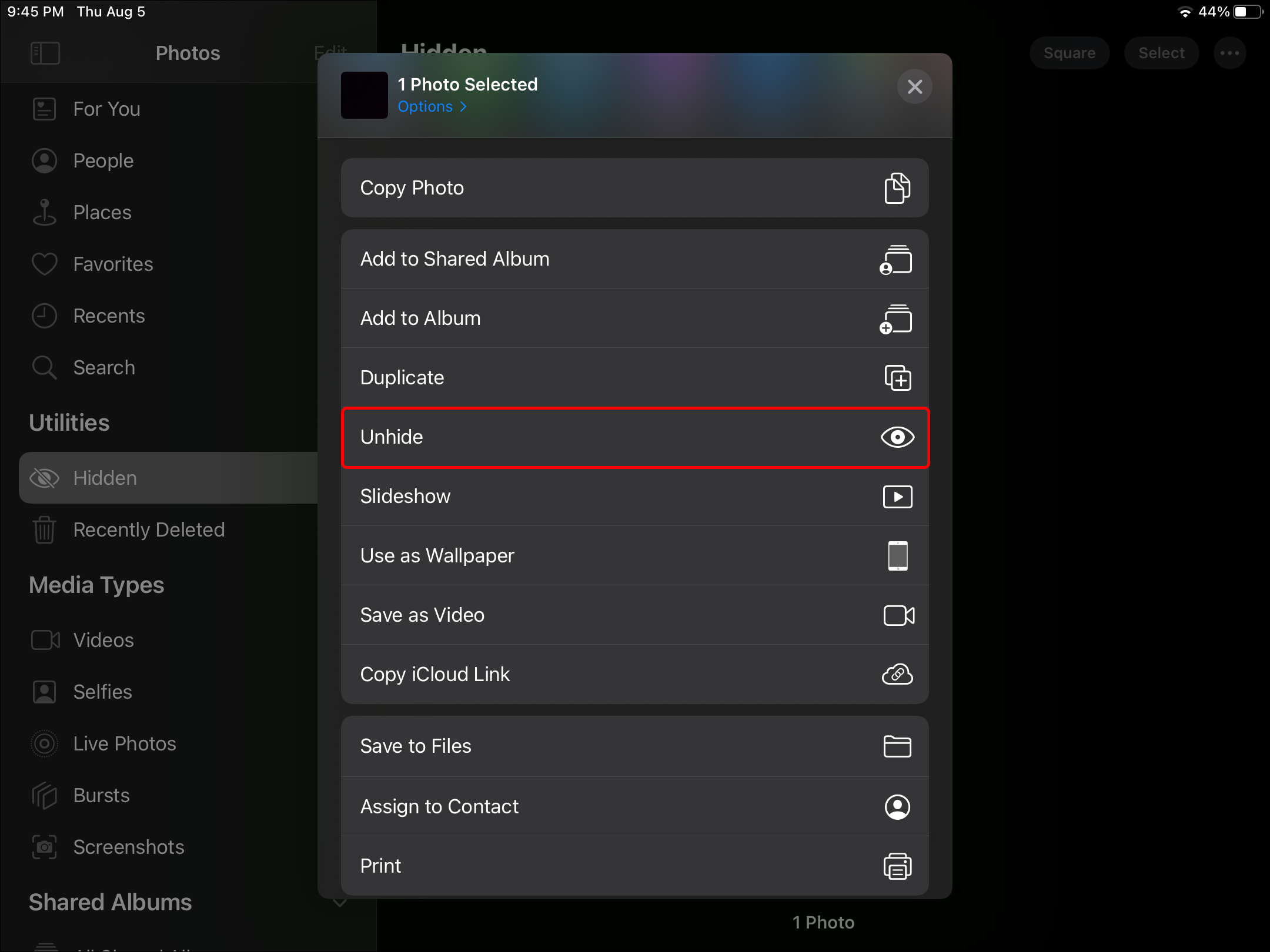 - Confirm that you wish to hide the photos.